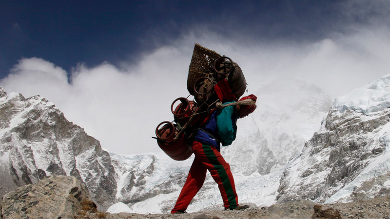 شرپا قومی بومی هیمالیا است که در رشته کوه هیمالیا و با اکسیژن کم زندگی می کنند. همین مسئله باعث شده که تولید زیاد هموگلوبین به این مردم به ارث برسد. پس شرپاها به راحتی می توانند در شرایط اکسیژن کم دوام بیاورند. اکنون مردم شرپا که راه صعود را به خوبی می شناسند، کوهنوردان را راهنمایی می کنند و در بردن وسایل آن ها به بالای کوه کمک می کنند. برای همین امروزه به کسانی که پول می گیرند تا وسایل کوهنوردان را حمل کنند، شرپا گفته می شود.