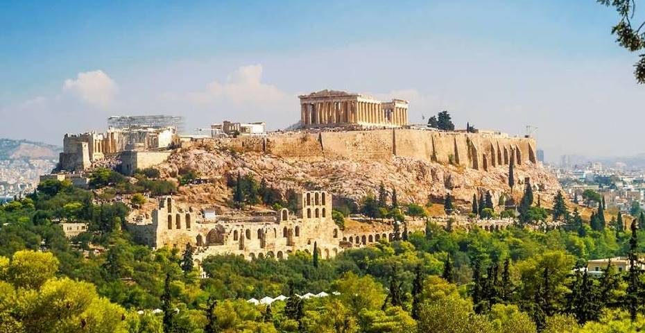 نمایی دور از سازه‌ های یونان باستان و معماری آن‌ها